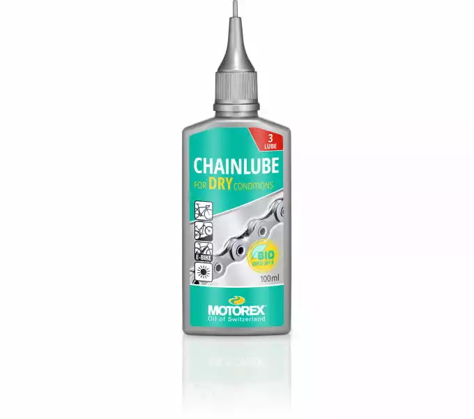 MOTOREX Dry Condition is een snel biologisch afbreekbaar, volledig synthetisch kettingsmeermiddel met stof- en vuilafstotende eigenschappen. Het wordt gekenmerkt door een goede ketenhechting en een uiterst doeltreffende bescherming tegen corrosie en oxidatie. De aangepaste viscositeit maakt nauwkeurig en soepel schakelen mogelijk dankzij een goede kettingpenetratie.