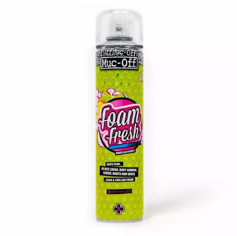 Muc-Off Foam Fresh is een zeer effectieve, gemakkelijk te gebruiken schuimreiniger die ideaal is voor helmvoeringen of andere zachte materialen die in contact komen met de rijder. Foam Fresh heeft een onmiddellijke schuimende werking die vuil en aanslag zachtjes van het oppervlak verwijdert en een frisse citrusgeur achterlaat. Zelfs de schoonste apparatuur heeft baat bij dit uniek geformuleerde product. Het is ideaal voor gebruik op pads, handschoenen, schoenen, binnenlaarzen en beschermende vesten.