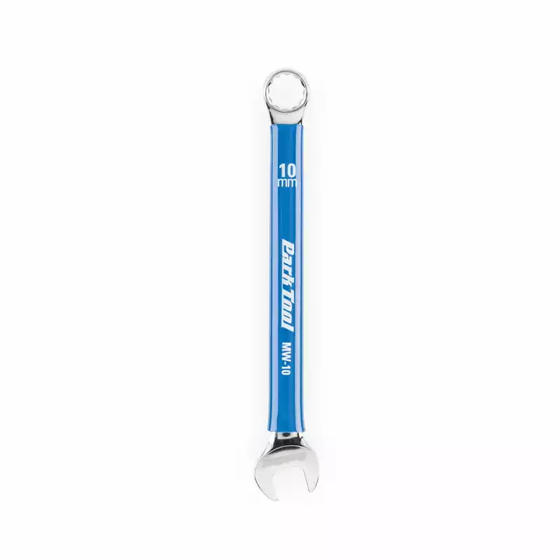 Een ring- en steeksleutel in Park Tool kwaliteit met een bekbreedte van 10 mm. Gesmeed chroom vanadium staal, gepolijst chroom en met blauwe plastic coating in het handvat gedeelte. Stevig, comfortabel en gewoonweg mooi. Een must voor elke schroevendraaier!