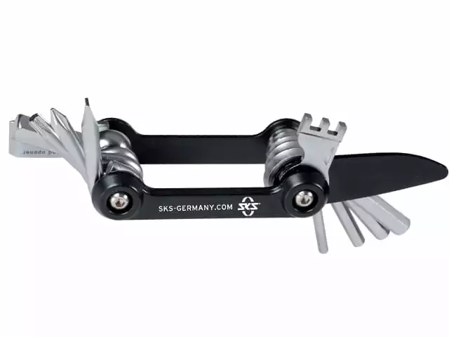 Iedere fietser zou dit kleine metalen gereedschap bij zich moeten hebben. Zijn 14 functies zullen helpen bij de meeste defecten.