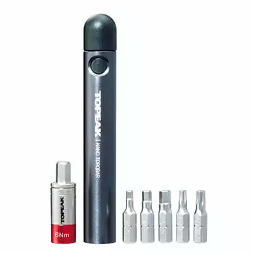 De Nano TorqBar is de slankste en meest compacte momentsleutel (preset) op de markt! Een nauwkeurig vervaardigd stuk gereedschap van hoge kwaliteit voor de thuismonteur, de fietswerkplaats of uw eigen jaszak. Bijzonder geschikt voor hightech carbon frames, onderdelen en elektronische tandwielen die een exact aanhaalmoment vereisen.Verkrijgbaar in drie vooringestelde draaimomenten (4 Nm, 5 Nm, 6 Nm), elk met de 5 belangrijkste bits (3 mm/4 mm/5 mm/T20/T25). De twee belangrijkste bits kunnen ook worden opgeborgen in het handvat van de TorqBar voor de snelst mogelijke toegang en handig transport.