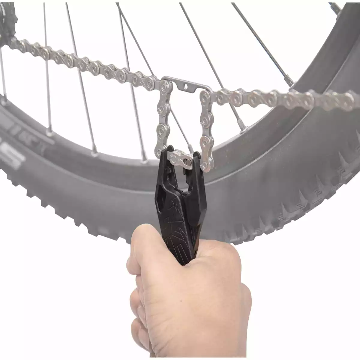 Het Power Lever Tool is het enige gereedschap dat een bandenlichter en een kettingsluittang in één combineert. Met zijn moderne design en compacte afmetingen kan hij snel worden opgeborgen om ruimte te besparen en is hij altijd bij de hand. Het gereedschap zelf heeft een geïntegreerde kettinghaak en een extra ruimte voor een kettingschakel. Beide zijden worden samengehouden door een magnetisch punt om de kettingsluittang te vormen. En door deze magneet zitten beide kanten aan elkaar vast en gaat er dus niets verloren.